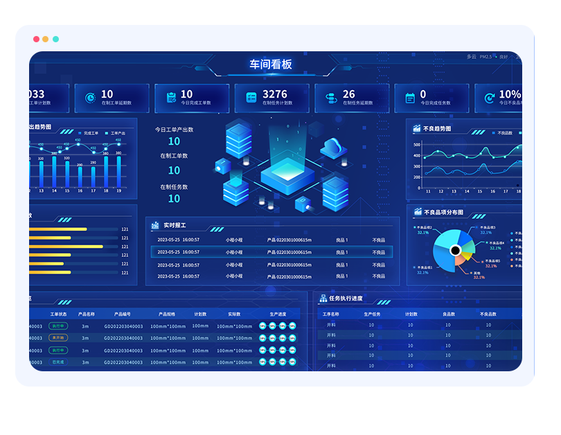 支持实时报工,按需调配生产工,实时监控生产过程数据,优化生产流程,提高效率和质量。