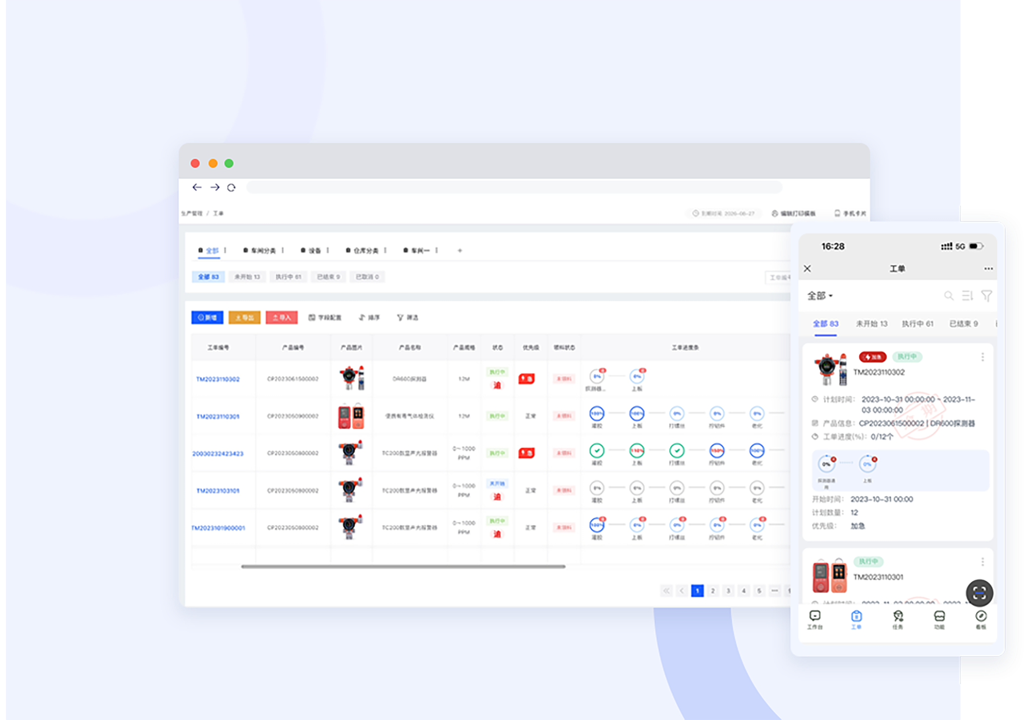 生产工单以可视化方式呈现,包括任务分配、生产工序,生产进度进度跟踪和工单状态。清晰地了解每个工单的执行情况,确保任务按时完成